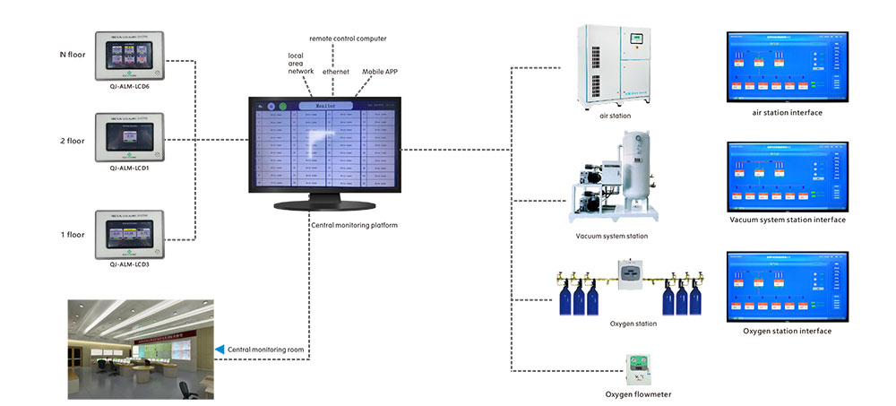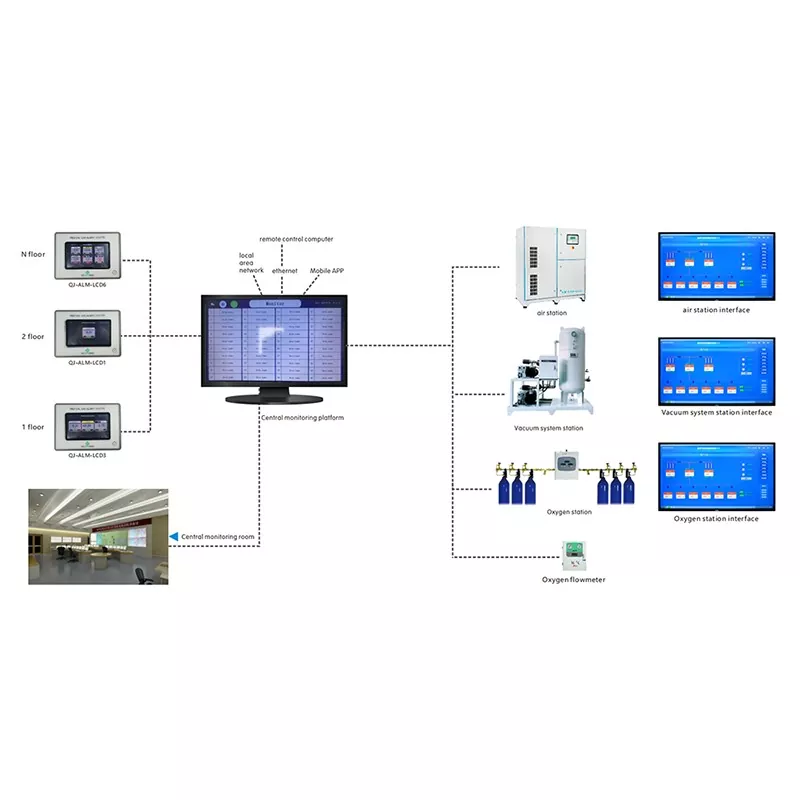 6. След като централизираната система за мониторинг е свързана към Ethernet, може да се реализират дистанционната работа и споделянето на мрежата. Стандартният интерфейс RS485 осигурява всички алармени сигнали в реално време и изход на данни за налягането