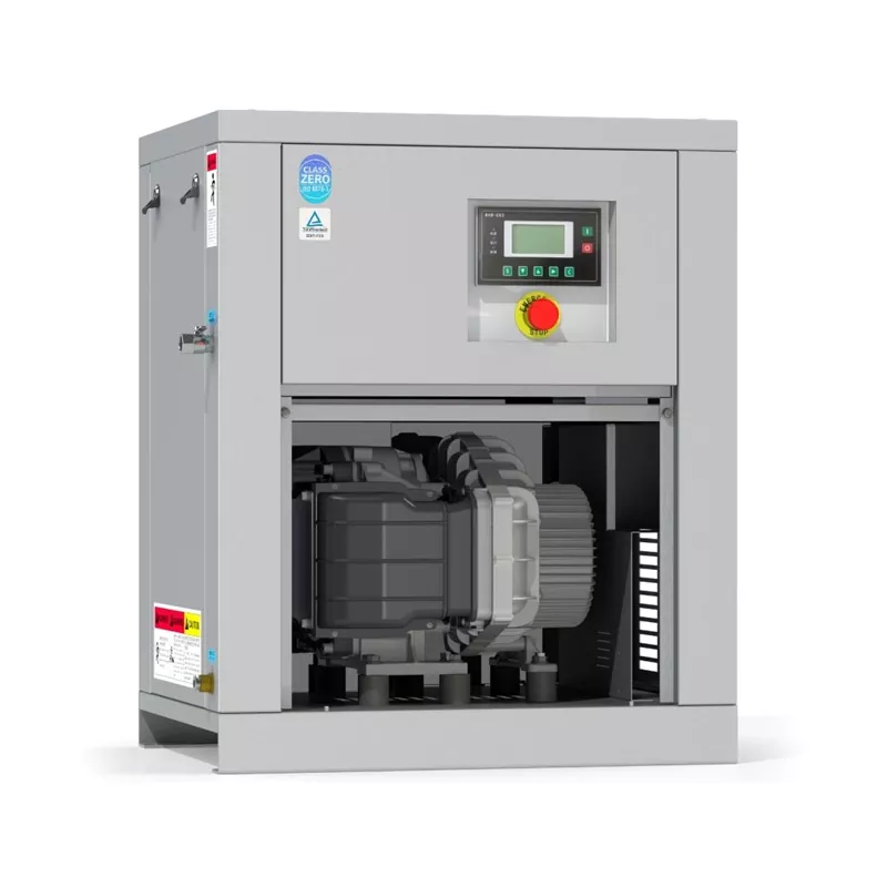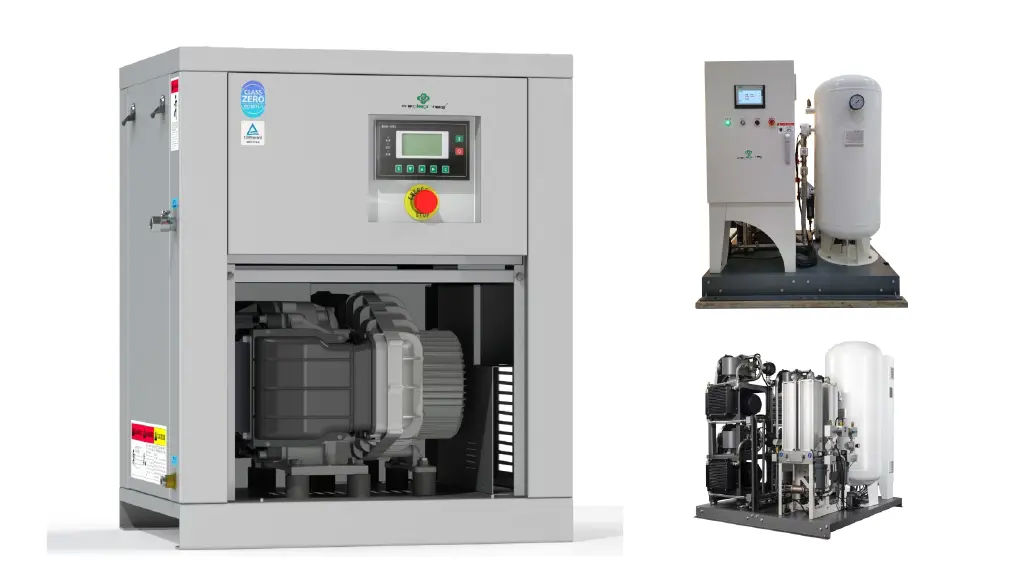 Функция: Компресира газ през високоскоростно въртящо се колело, висок дебит и стабилно налягане, подходящ за голям дебит и сценарии с ниско налягане, използвани най-вече в големи болници.
