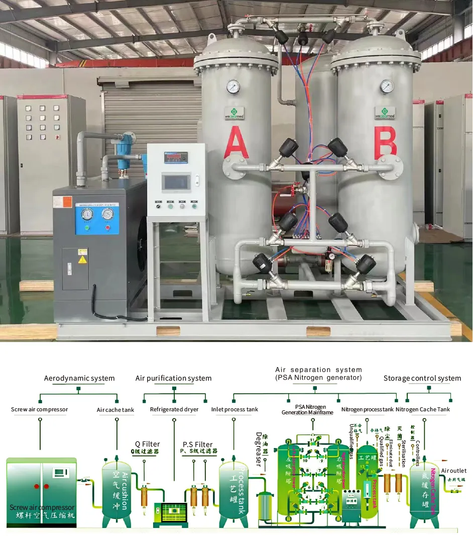 Малката течна азотна оборудване с висока чистота може да използва напред и обратния поток; Методи от множество организации на процеса като единична кула и двойна кула се използват за отговаряне на различните изисквания на клиентите на нивото на налягане. Цялото устройство може да приеме DC или PLC система